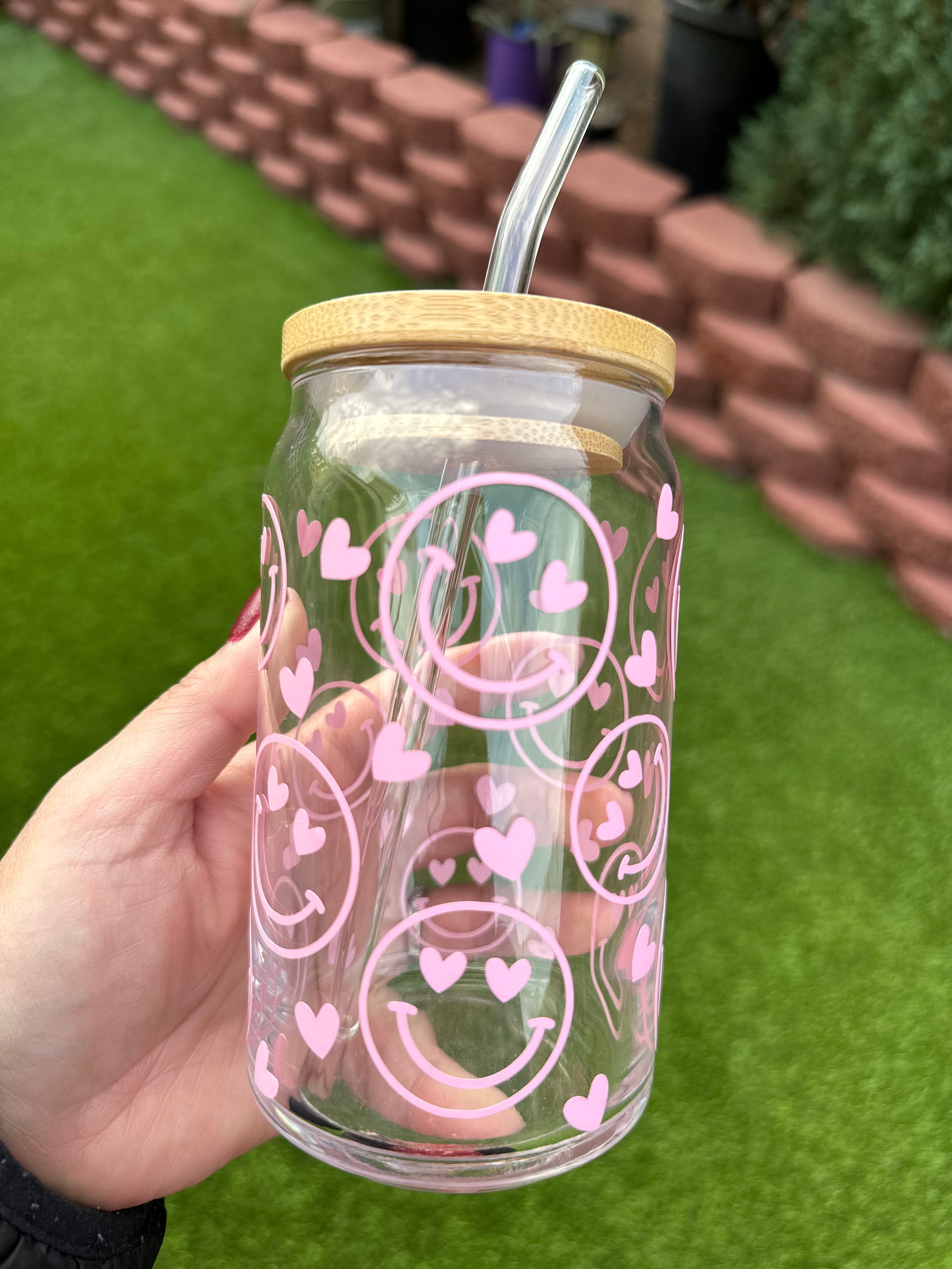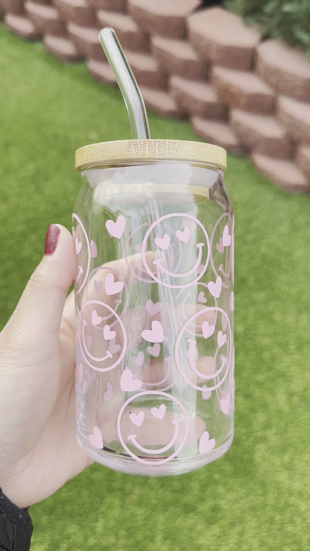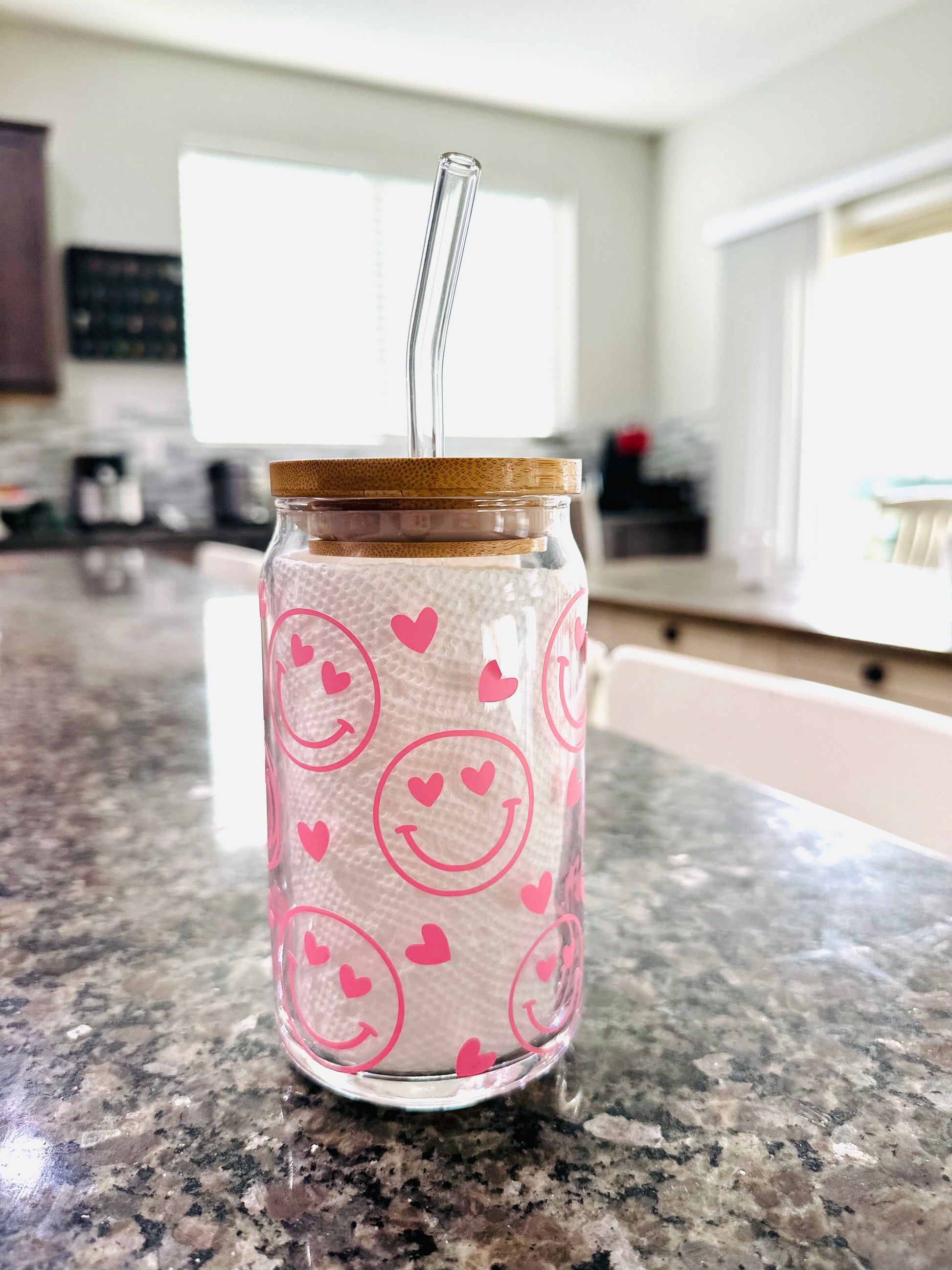 The perfect glass for any drink, any time of day! Iced coffee, beer, wine, smoothies, lemonade, tea, and more! This beer can is designed with a decal made of permanent vinyl. Glass drinkware features happy and uplifting designs to put a smile on your face.