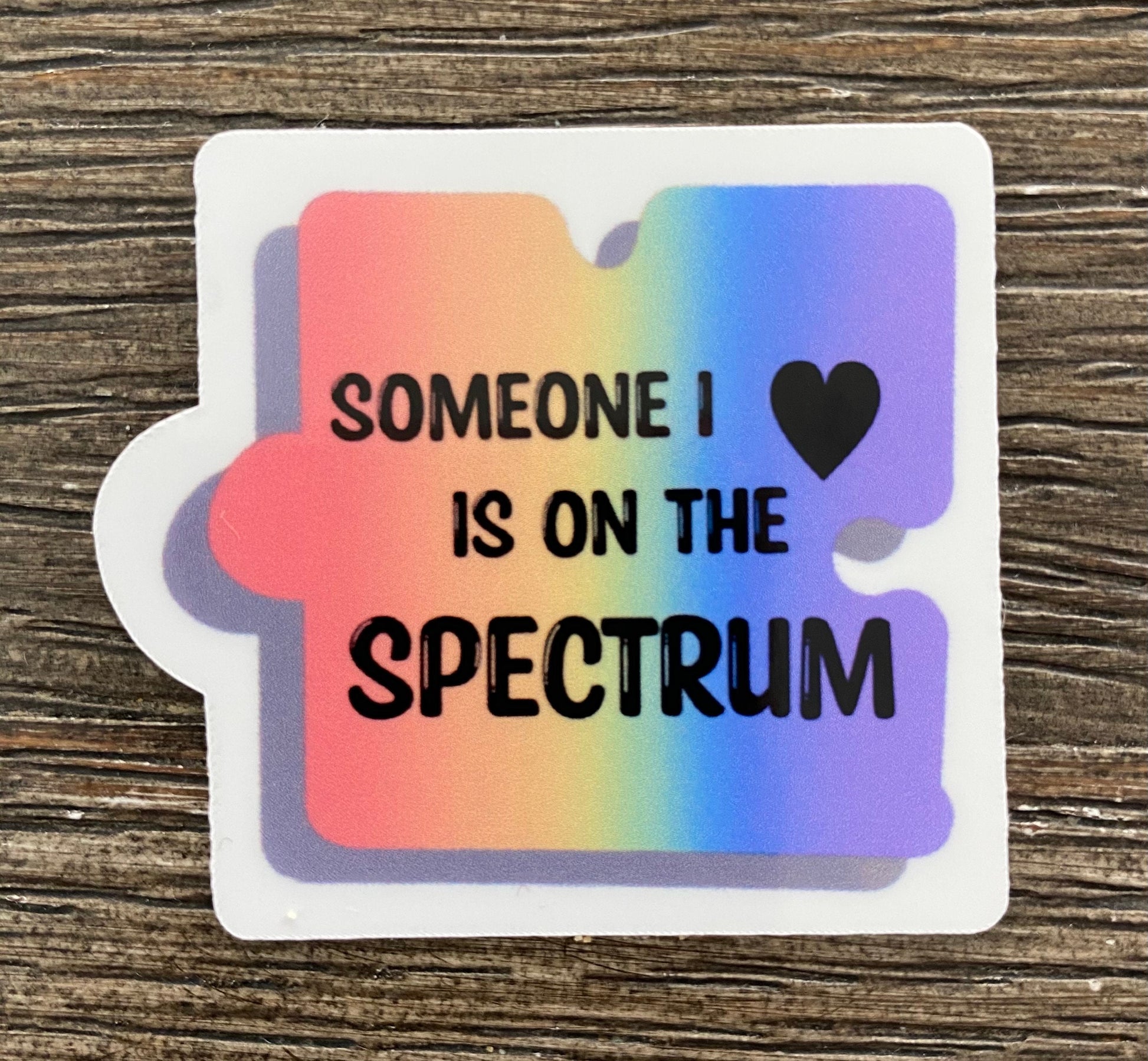 Someone I love is on the spectrum sticker is to brighten anyone's day. Show what matters most to you. this sticker exemplifies our love for those in the spectrum Celebrate their differences by placing this in your favorite items. Great to use on personal items such as water bottles, cellphones, laptops, tablets, notebooks, folders, and binders. Make anyone smile! The product is made from premium matte vinyl and is water-resistant. The sticker adheres to any flat surface.